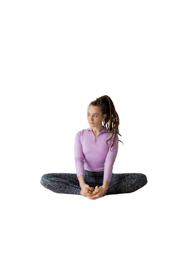 This basic yoga pose opens the hips and chest, stretches the groin, the ankles and the feet, strengthens the spine and stimulates the reproductive, nervous and respiratory systems. Additionally, it helps get rid of mild depression, anxiety, fatigue and other stressful emotions. It soothes menstrual discomfort, sciatica and reduces symptoms of menopause. Also, gives benefit for people with flat feet, asthma, high blood pressure, and infertility. Consistent practice of this pose until late into pregnancy is said to help ease childbirth. It’s a great pose for pregnancy, and you can practice it in every trimester. If you have kiddos, they can do this also with you. Kids called this Butterfly pose.